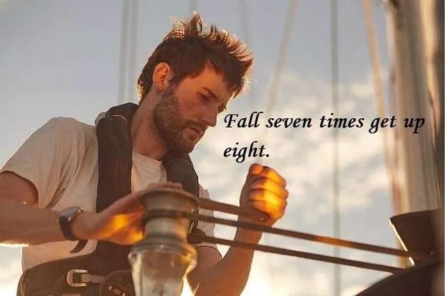 大意:(如果)跌倒七次,(就)爬起來八次。